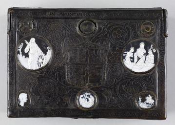 | Keywords: Don Juan Lopez Quixada - Leather Box for the Pennant of Francis I at the Battle of Pavia - Walters 731 - Top.jpg Walters Art Museum artwork Patron Creator Don Juan Lopez Quixada Artist This box was a Habsburg secular reliquary The inscription inside records that it once held the personal pennant of the French king Francis I taken at his capture in 1525 on the battlefield at Pavia Italy after the defeat of the French army by that of Emperor Charles V The box made to contain the folded silk pennant bears the arms of the Habsburg commander Don Juan Lopez Quixada who captured the pennant now in the Musée de la Porte de Hal Brussels 1525 Renaissance molded and incised leather glass cameos partially gilded and enameled silver paper H 2 7/16 x L 5 11/16 x W 4 in 6 19 x 14 45 x 10 16 cm accession number 73 1 2330 Charles Stein 1840-1899 Paris date and mode of acquisition unknown Henry Walters Baltimore date of acquisition unknown by purchase Walters Art Museum Henry Walters Acquired by Henry Walters Translation on interior lid engraved on two plaques of silver apparently cut from another object Don Juan Lopez Quixada doctor of canon law and choir master won the standard that lies here and these very saint relics when the King of France lost the Battle of Pavia and was made prisoner by the Spaniards the 25th of February of the year 1525 World of Wonder Walters Treasures of Heaven The Cleveland Museum of Art Cleveland; The Walters Art Museum Baltimore; The British Museum London 2010-2011 place of origin Spain Walters Art Museum license Renaissance applied arts in the Walters Art Museum Don Juan Lopez Quixada Media contributed by the Walters Art Museum needs category review Media contributed by the Walters Art Museum needs artist review |