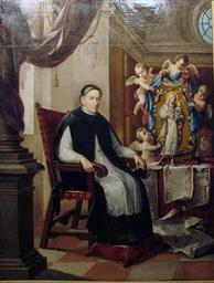 | Keywords: Don luis de salcedo y azcona.jpg Retrato del prelado Luis de Salcedo y Azcona 1667-1741 que fue arzobispo de Sevilla El retrato se encuentra en el Palacio arzobispal de Sevilla España Siglo XVIII oil canvas Size cm Institution Palacio arzobispal de Sevilla object history exhibition history credit line accession number http //www galeon com/juliodominguez/2009/salcedo jpg PD-old-100 Luis de Salcedo y Azcona Paintings in the Palacio arzobispal de Sevilla Sitting men Domingo Martínez | ||||