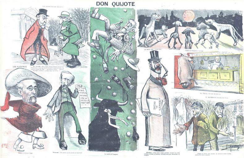 | Keywords: Don Quijote, 5 de diciembre de 1902.jpg es Caricatura 1902-12-05 cite journal Don Quijote ” ” ” XI 48 2-3 http //hemerotecadigital bne es/issue vm id 0003818536 page 2 1902-12-5 2254-5581 Creator Manuel Tovar Siles «D Hermógenes» PD-Scan PD-old-auto-1923 1935 other versions Caricatures by Manuel Tovar in Don Quijote 1902 cartoons Cristóbal Colón de la Cerda Catalan nationalism in caricature Segismundo Moret caricatures Práxedes Mateo Sagasta caricatures Count of Romanones caricatures Antoni Maura caricatures Francisco Silvela caricatures Juan Manuel Sánchez y Gutiérrez de Castro Manuel de Llano y Persi |
