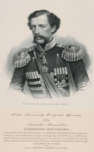 | Keywords: Dondukovkorsakovam.jpeg  kniaz Aleksándr Mijáilovich Dondukov-Korsákov en ruso Алекса́нд  иха́йлович Дондуко́в-Ко са́ков; San Petersburgo 12 de septiembre de 1820 - Uyezd de Pórjov 15 de abril de 1893 гене ал-майо Александ  ихайлович Дондуков-Ко саков По т еты лиц отличившихся заслугами и командовавших действующими частями в войне 1853-1856 годов Т 1 СПб 1858-1861 1858 1861 author PD-old Original upload log ru wikipedia Bagratun page ru wikipedia Dondukovkorsakovam jpeg 2007-07-27 10 59 Netelo 535×760× 35466 bytes <nowiki> Изоб ажение Описание гене ал-майо Александ  ихайлович Дондуков-Ко саков Авто неизвестен В емя создания 1858-1861 Источни</nowiki> Aleksandr Dondukov-Korsakov Portrait paintings of Cossacks in uniforms Commanders of the Caucasian War 1817 1864 |