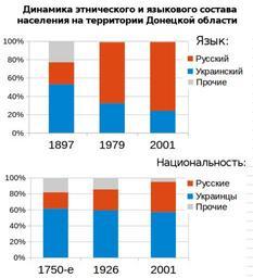 | Keywords: Donetsk dynamics.png ru Динамика этнического и языкового состава населения на те ито ии нынешней Донецкой области Ук аина Источники данных П о кількість та склад населення Донецької області за підсумками Всеук аїнського пе епису населення 2001 оку Численность и состав населения СССР по данным Всесоюзной пе еписи населения 1979 года Цент альное статистическое уп авление СССР 1984 Всесоюзная пе епись населения 1926 года Том XI-XIII Ук аинская ССР - Изд-е ЦСУ Союза ССР Пе вая всеобщая пе епись населения Российской Импе ии 1897 г Расп еделение населения по одному языку и уездам 50 губе ний Ев опейской России Пі ко В О Заселення Донеччини у ХYІ-ХYІІІ ст Донецьк Східний видавничий дім ТШ-Донецьк 2003 182 с 2014-07-05 20 59 43 own Alex1961 cc-zero Uploaded with UploadWizard Donetsk Oblast |