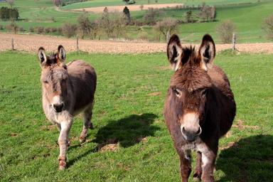 Keywords: donkey domestic donkey equus asinus asinus animals go stand brown dark brown for two last animal perissodactyla curious on pasture nature