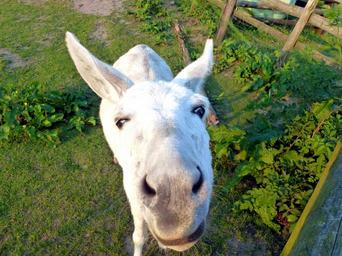 Keywords: donkey donkey head funny creature fur beast of burden white rural animal meadow nature view livestock animal world
