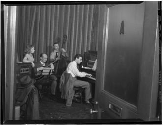 | Keywords: Donn Trenner with Helen Carr, Sammy Herman, Joe Bianco,, Nola's, New York, N.Y., ca. Feb. 1947 (William P. Gottlieb 14521).jpg en Donn Trenner right with Helen Carr Sammy Herman Joe Bianco Nola's New York N Y http //lcweb2 loc gov/diglib/ihas/loc natlib gottlieb 14521/enlarge html page 1 section ver01 size 1024 from Creator William P Gottlieb 1947-02 PD-Gottlieb Photographs by William P Gottlieb Black and white photographs of the United States in the 1940s Jazz pianists Helen Carr Donn Trenner Sammy Herman Joe Bianco |