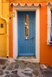 Keywords: door blue collioure pyrénées-orientales france entrance doorway