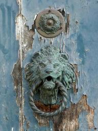 Keywords: door blue door knocker knocker lion brass old venice murano architecture weathered italy patina europe decorative pull door handle handle buzzer