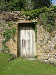Keywords: door gate wooden wall stone bougainvillea