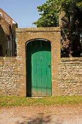 Keywords: door green old wood wooden stone wall countryside rural outdoors