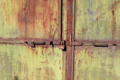 Keywords: door industrial iron metal old rusty warehouse yellow industries