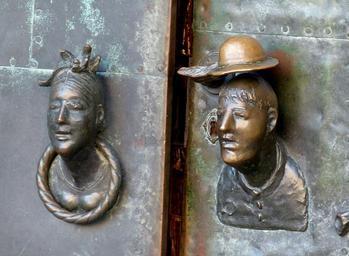 Keywords: door input plastic relief image head hat man woman portrait historically magdeburg saxony-anhalt