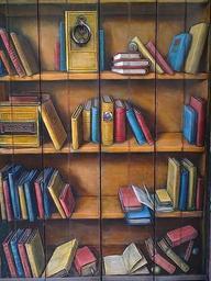 Keywords: door painted decoration bookshelf books