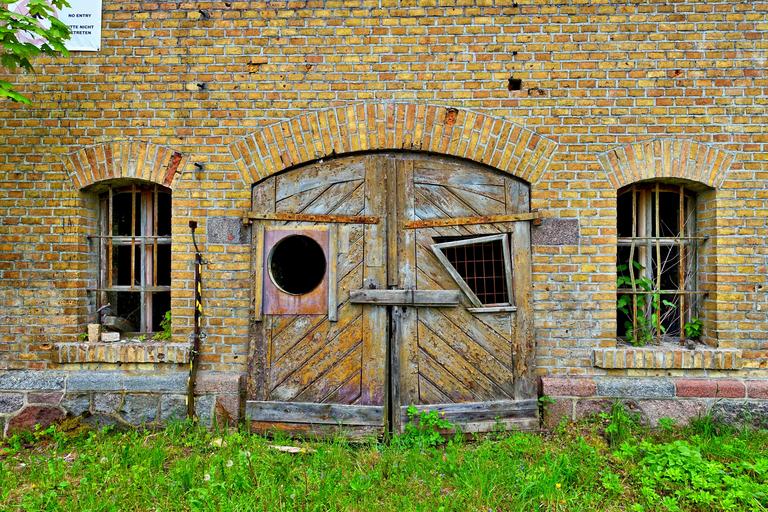 Keywords: door ruin barn entrance abandoned brick broken facade damaged old building