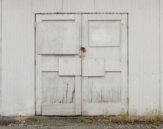 Keywords: door wall building creepy spooky warehouse winery old white lock barn paint cracked wood