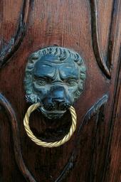 Keywords: doorknocker door handle door wood metal brass old goal access antique input handle lion ring