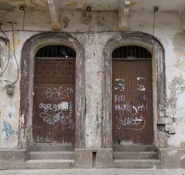 Keywords: doors architecture colonial graffiti grunge painted spray paint art tagging tags urban city vandalism colombia cartagena getsemani old building historic caribbean street facade spanish ancient town latin