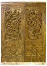 | Keywords: Doors, Pho Minh pagoda, Nam Dinh province, Tran dynasty, 13th-14th century AD, carved wood - National Museum of Vietnamese History - Hanoi, Vietnam - DSC05496.JPG en Exhibit in the National Museum of Vietnamese History Hanoi Vietnam Photography was permitted in the museum without restriction This artwork is old enough so that it is in the public domain 2014-08-06 02 58 41 own Daderot other versions cc-zero Wooden reliefs in the National Museum of Vietnamese History Uploaded with UploadWizard |
