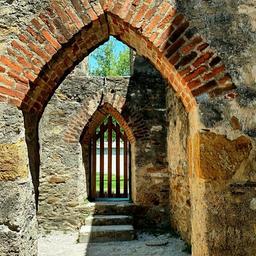 Keywords: doorway bricks gate entrance old mission door architecture building wooden archway