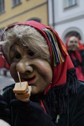 Keywords: doraweibla dornstadt strassenfasnet fools jump swabian alemannic fasnet move haes mask carnival masquerade costume panel tradition customs haestraeger wooden mask carved custom liz woman face