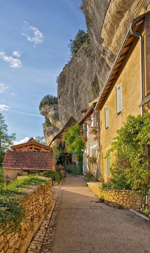 Keywords: dordogne france buildings houses flowers mountain cliff architecture plants summer spring outside
