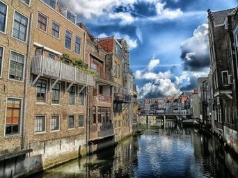Keywords: dordrecht netherlands city cities urban buildings canal water reflections hdr sky clouds