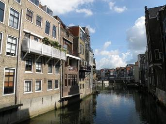 Keywords: dordrecht netherlands city urban buildings architecture skyline boats ships pier dock trees cities summer spring outside sky clouds canal waterway reflections plants