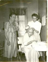| Keywords: dorlee bixler dorleebixler nurses aid nursesaid mennonite board of missions maple lawn homes home for the aged eureka illinois voluntary service mennonite voluntary service elderly nursing homes mennoniteboardofmissionsmaplelawnhomeshomefortheagedeurekaillinoisvoluntaryservicemennonitevoluntaryserviceelderlynursinghomes groupshot people monochrome Caption: July, 1953. Dorlee Bixler, Sugarcreek, O., serving as nurse aide at Menn. Home for the Aged, Eureka, Ill. Citation: Mennonite Board of Missions. Photographs. Illinois, Eureka, Home for the Aged, 1950-1955. IV-10-7.2 Box 3 Folder 71. Mennonite Church USA Archives - Goshen. Goshen, Indiana. Caption: July, 1953. Dorlee Bixler, Sugarcreek, O., serving as nurse aide at Menn. Home for the Aged, Eureka, Ill. Citation: Mennonite Board of Missions. Photographs. Illinois, Eureka, Home for the Aged, 1950-1955. IV-10-7.2 Box 3 Folder 71. Mennonite Church USA Archives - Goshen. Goshen, Indiana. |