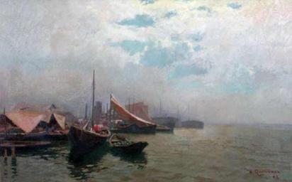 | Keywords: Dosekin 007.jpg Artwork Creator Nikolay Dosekin en Ships of the Volga Pier 1893 oil canvas cm 82 0 128 0 Private collection object history exhibition history credit line accession number http //sovcom ru/index php category auction auctiontype lot lot 26 auction 64 PD-old-70 Nikolay Dosekin |