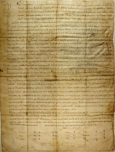 | Keywords: Dotación del Cid a la catedral de Valencia 1098.jpg es Diploma de dotación del Cid a la catedral de Valencia segundo semestre de 1098 Véase Ramón Menéndez Pidal http //bibliotecadigital jcyl es/i18n/consulta/registro cmd id 4240 «Autógrafos inéditos del Cid y de Jimena en dos diplomas de 1098 y 1101» Revista de Filología Española t 5 1918 Madrid Sucesores de Hernando 1918 Copia digital Valladolid Junta de Castilla y León Consejería de Cultura y Turismo Dirección General de Promociones e Instituciones Culturales 2009-2010 Original en Archivo de la Catedral de Salamanca caja 43 leg 2 n º 72 Véase Alberto Montaner Frutos y Ángel Escobar «El Carmen Campidoctoris y la materia cidiana» en Carmen Campidoctoris o Poema latino del Campeador Madrid Sociedad Estatal España Nuevo Milenio 2001 pág 73 lam ISBN 978-84-95486-20-2 y Alberto Montaner Frutos http //e-spania revues org/20201 «Rodrigo el Campeador como princeps en los siglos XI y XII» http //e-spania revues org/ e-Spania en línea n º 10 diciembre de 2010 y Georges Martin http //e-spania revues org/20087 «El primer testimonio cristiano sobre la toma de Valencia 1098 » e-Spania n º 10 diciembre de 2010 que incluye transcripción del texto a partir del original Puestos en línea el 22 enero de 2011 URL <http //e-spania revues org/20201> Consultados el 30 abril de 2011 y 29 de junio de 2014 respectivamente Texto completo edición José Luis Martín Martín et al http //books google es/books id r0qwxJMJ7zoC lpg PP1 pg PA79 v onepage q f false Documentos de los Archivos Catedralicio y Diocesano de Salamanca siglos XII-XIII Salamanca Universidad 1977 doc 1 p 79-81 y Georges Martin http //e-spania revues org/20087 «El primer testimonio cristiano sobre la toma de Valencia 1098 » e-Spania n º 10 diciembre de 2010 Transcripción paleográfica http //bibliotecadigital jcyl es/i18n/consulta/registro cmd id 4240 Menéndez Pidal art cit 1918 págs 11 - 13 Imágenes digitales núms 19 20 y 21 «Año 1098 después del 24 de junio Rodrigo Díaz Campeador dota con varias heredades la iglesia catedral de Valencia» Autógrafo de Rodrigo Díaz «ego ruderico simul cum coniuge mea afirmo oc quod superius scriptum est»<br /><br /> en Document about Rodrigo Díaz also called El Cid that reflects that he makes a donation to the Cathedral of Valencia The original is in the Archive of the Cathedral of Salamanca box 43 list 2 number 72 It reads in Latin ego ruderico I Rodrigo 1098 Diploma de dotación del Cid a la catedral de Valencia de 1098 Archivo de la Catedral de Salamanca caja 43 leg 2 n º 72 Jerónimo de Perigord Martinus notario Rodrigo Díaz suscriptor Ego Ruderico 2 jpg PD-Old-100 Uploaded with UploadWizard El Cid Signatures of people from Spain Signatures of military people Spain in the 11th century 1098 documents Chi Rho in Spain |