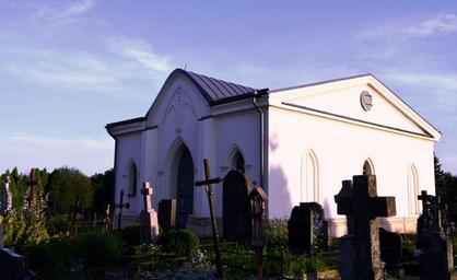 | Keywords: Dotnuvos g. kapinės 2.jpg Kėdainių Dotnuvos g kapinės koplyčia Gothic-revival chapel Dotnuva street cemetery Kėdainiai Lithuania own 2012-07-25 Hugo arg 55 17 48 97 N 23 58 6 25 E region LT Cemeteries in Kėdainiai Chapels in Lithuania Gothic revival architecture |