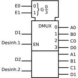 Keywords: Double 1-to-4 demultiplexer IEC symbol.svg en Double 1-to-4 demultiplexer symbol IEC standard es Doble demultiplexor de 4 canales símbolo IEC own Dizquierdol Made with Dia v0 97 1 Cc-zero Demultiplexers