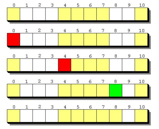 | Keywords: Double hashing png.png diagram Example of double hashing Yellow <nowiki> </nowiki> occupied red <nowiki> </nowiki> collision green <nowiki> </nowiki> place of insertion Voorbeeld van double hashing Geel <nowiki> </nowiki> bezet rood <nowiki> </nowiki> botsing groen <nowiki> </nowiki> plaats van invoegen Own 2006-06-15 Hash tables |