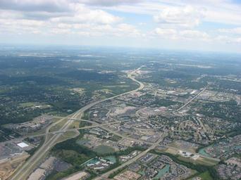 | Keywords: Double interchange on I675.jpg Aerial view of Interstate 675 Ohio Interstate 675 on the border between the cities of Kettering Ohio Kettering and Centerville Montgomery County Ohio Centerville southeast of the city of Dayton Ohio Dayton Ohio United States The double interchange at the center of the picture is that with Far Hills Avenue/ Ohio State Route 48 State Route 48 farther from camera and that with Alex Bell Road closer to camera Picture taken from a Diamond DA20 Diamond Eclipse light airplane at an altitude of 3 500 feet Sea level MSL and a bearing of approximately 60ยบ Own 2008-08-12 User Nyttend Nyttend Aerial photographs of Ohio Centerville Montgomery County Ohio Interstate 675 Ohio Kettering Ohio Aerial pictures by User Nyttend |