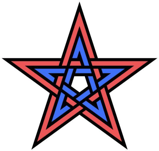 | Keywords: Double-interlaced-pentagram.svg Two mutually interlaced concentric pentagrams Self-made graphic own 2010 AnonMoos 2 component links Pentagrams Decorative knots 20 crossing number knots and links Outline knots and links Generated by PostScript |