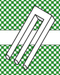 | Keywords: Double optical illusion.svg The Blivet or Poiuyt impossible object shown against a warped checkerboard optical illusion background There are no curved lines in the picture except the ovals at the ends of the tines of the fork The sides of the squares of the green-and-white checkerboard are strictly horizontal or vertical Self-made image derived by combining Optical-illusion-checkerboard-twisted-cord svg and Poiuyt--opaque svg Optical-illusion-checkerboard-twisted-cord svg Poiuyt--opaque svg g 2012 AnonMoos Blivet |