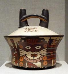 | Keywords: Double-spouted vessel depicting Oculate Being, Peru, South Coast, Nasca, 400-1000 AD, earthenware and pigment - De Young Museum - DSC00338.JPG en Exhibit in the De Young Museum San Francisco California USA This artwork is in the public domain because the artist died more than 70 years ago Photography was permitted in the museum without restriction 2013-11-05 14 58 22 own Daderot other versions cc-zero Uploaded with UploadWizard Nazca pottery in the De Young Museum | ||||