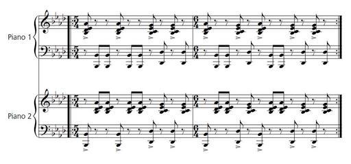 Keywords: Doublesextet1.png en Excerpt created from ear of third movement of Double Sextet by Steve Reich Own Amistry mistry 2010-04 Steve Reich Sheet music examples