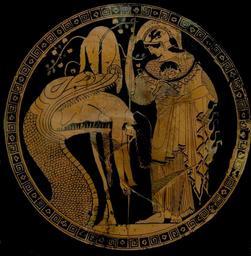 | Keywords: Douris cup Jason Vatican 16545.jpg Jason being regurgitated by the snake who keeps the Golden Fleece center hanging on the tree ; Athena stands to the right Red-figured cup by Douris c 480-470 BC From Cerveteri Etruria Jason régurgité par le serpent gardien de la Toison d'or pendue sur l'arbre au centre ; Athéna se tient à droite Coupe à figures rouges de Douris v 480-470 av J -C Provenance Cerveteri Étrurie Museum musei Vaticani Museo Gregoriano Etrusco object history credit line accession number Inv 16545 Shii 2006-03-20 other versions Shii Athena in ancient Greek pottery Dragons in ancient Greek pottery Golden Fleece Jason in ancient Greek pottery Kylix interiors Douris Ancient Greek pottery in Rome Vaticano Ancient Greek pottery in the Museo Gregoriano Etrusco 480s BC Ancient Greek pottery from Cerveteri Plants in ancient Greek pottery checked |