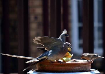 Keywords: dove friends wings birds sparrow apple garden food outdoors