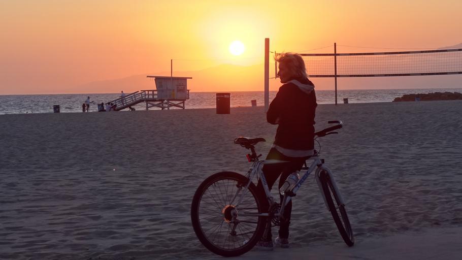 Keywords: dove wait cycling woman person human beach sea sunset abendstimmung sun