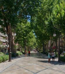 Keywords: downtown Granada Spain people street tree summer