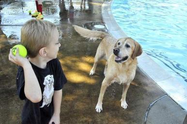 | Keywords: Dozens of doggie dippers take end-of-season plunge 130907-D-NT551-001.jpg en An anxious Nelson a golden retriever/lab mix waits for a pool-side pitch from 5-year-old Davis McNulty to start off the Sept 7 Joint Base Myer-Henderson Hall Doggie Dip at the Officers Club pools Nelson and nearly six dozen other dogs had the opportunity for a dog paddle to close out the O ™ Club outdoor swimming season Photo by Jim Dresbach 2013-09-07 Brian Parker https //www dvidshub net/image/1018898 130907-D-NT551-001 2013-09-16 09 12 JOINT BASE MYER-HENDERSON HALL VA US PD-USGov Joint Base Myer-Henderson Hall Images from DoD uploaded by Fæ |