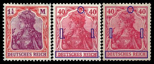 | Keywords: DR 1920 145 Germania Vergleich.jpg wikitable float-left - de I wie zweifarbige 1 1/4 M links de II en I like two colored 1 1/4 M on the left en II - 1 Kaiserkrone nicht im Rahmen eingepasst passgenau Krone klar erkennbar crown not exactly inside of the border cross of the crown best to seen - 2 Rahmenzwischenraum unterschiedlich dick Rahmenzwischenraum links / rechts exakt gleich whitespace between border and portrait not equal whitespace exact equal between left and right - 3 etwas grĂ¶ĂŸere und fettere Buchstaben oft nicht mittig Schriftzug genau mittig eingepasst a bit more large and bold charakters sometimes not exactly centered text centered / Briefmarkenbeschreibung Dauermarkenserie Germania Vergleich die Werte 30 40 50 75 und 80 Pfennig sind zu einem Teil von einer Platte Teilserie II und zum Teil von zwei separaten Platten Rahmen und Porträt/Inschrift getrennt Teilserie I gedruckt worden stamp series Germania comparison the stamps 30 40 50 75 and 80 Pfennig are partly printed of a single printing plate sub series II and partly of two separated printing plates border and portrait/inscription separately sub series I Ausgabepreis 40 Reichspfennig First Day of Issue / Erstausgabetag 1920 Michel-Katalog-Nr 145 I und II Deutsches Reich scanned by NobbiP 2009-11 Creator Paul Eduard Waldraff 1917 <gallery> File DR 1920 140 Germania jpg 1920 MiNr 140 File DR 1920 141 Germania jpg 1920 MiNr 141 File DR 1920 142 Germania jpg 1920 MiNr 142 File DR 1920 143 Germania jpg 1920 MiNr 143 File DR 1920 144 II Germania jpg 1920 MiNr 144 II File DR 1920 145 I Germania jpg 1920 MiNr 145 I File DR 1920 145 II Germania jpg 1920 MiNr 145 II File DR 1920 146 II Germania jpg 1920 MiNr 146 II File DR 1920 147 Germania jpg 1920 MiNr 147 File DR 1920 148 II Germania jpg 1920 MiNr 148 II File DR 1920 149 II Germania jpg 1920 MiNr 149 II File DR 1920 150 Germania jpg 1920 MiNr 150 File DR 1920 151 Germania jpg 1920 MiNr 151 File DR 1920 152 Germania jpg 1920 MiNr 152 File DR 1920 153 Germania jpg 1920 MiNr 153 </gallery> Germania stamps German stamps review keep 1920 stamps of the German Empire Various German stamps in one image |