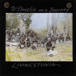 | Keywords: "Dr Elmslie on a journey, Livingstonia" Malawi, ca.1895 (imp-cswc-GB-237-CSWC47-LS3-1-030).jpg en <br> Dr Elmslie on a journey Livingstonia Malawi ca 1895 Photograph of a group of African men probably of the Ngoni people The men are gathered in a forest clearing and Dr Elmslie can be seen in the background sitting at the base of a tree ; Walter Angus Elmslie 1856-1935 was the author of Among the wild Ngoni some chapters in the history of the Livingstonia mission in British Central Africa New York 1899 The Ngoni people are an ethnic group living in Malawi Mozambique Tanzania and Zambia The Ngoni trace their origins to the Zulu people of kwaZulu-Natal in South Africa Photographer Unknown Subject personal name Elmslie Walter Angus 1856-1935 Filename imp-cswc-GB-237-CSWC47-LS3-1-030 tif Coverage date circa 1895 Part of collection International Mission Photography Archive ca 1860-ca 1960 Type images Part of subcollection Photographs from the Centre for the Study of World Christianity University of Edinburgh U K ca 1900-ca 1940s Repository name Centre for the Study of World Christianity Archival file impaunpub_Volume7/1416 url Repository address The University of Edinburgh School of Divinity New College Mound Place Edinburgh EH1 2LX United Kingdom Geographic subject country Malawi Format aacr2 1 lantern slide 8 x 8 cm Geographic subject continent Africa Rights Contact the repository for details Part of series Elmslie of the Wild Ngoni LS3/1 Repository email divinity-CSWC ed ac uk Subject lcsh Keyword Tribes Date created circa 1895 Publisher of the digital version University of Southern California Libraries Subject aat genre group portraits Format aat lantern slides Legacy record ID impa-m68426 Access conditions http //www ed ac uk/schools-departments/divinity/research/centres/world-christianity/collections-resources File GB 237 CSWC47/LS3/1/30 1895 author http //digitallibrary usc edu/cdm/ref/collection/p15799coll123/id/64537 PD-old-70-1923 Magic lantern images Images from USC Digital Library uploaded by Fæ International Mission Photography Archive ca 1860-ca 1960 |