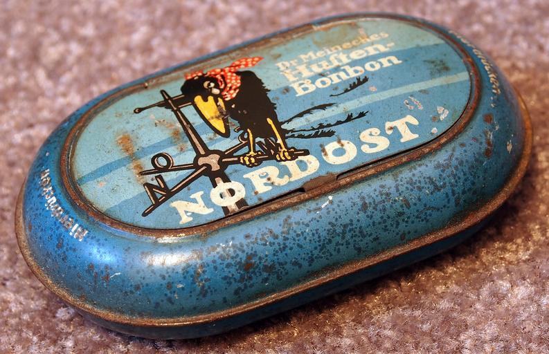 | Keywords: Dr Meineckes Husten Bonbon NORDOST blikje, foto2.JPG Very old product that is not produced and not sold any more Note that some tins may look the same but when looked for carefully there are some slight differences own 2013-12-22 13 52 18 Alf van Beem CC-Zero Trademarked Cough drop tins |