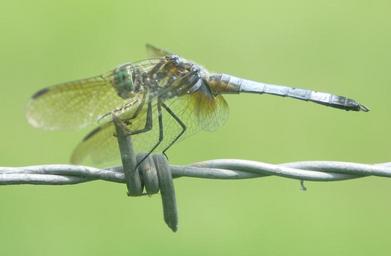 Keywords: dragonfly insect bug wings nature outside close-up wild life green barbwire