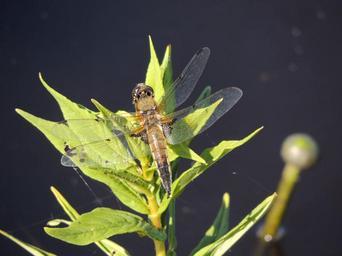 Keywords: dragonfly macro insect nature green predatory insect water close compound eyes leaf garden pond pond inhabitants macro photography
