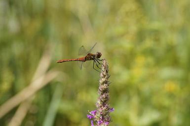 Keywords: dragonfly red red dragonfly close macro flight insect insect wing nature animal predator summer fly filigree blood-red flora wetland wetlands near shore pond lake bank moist