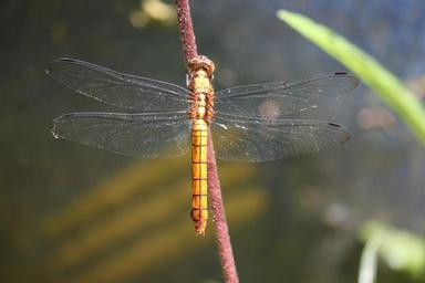 Keywords: dragonfly yellow insects bugs gardens still life outdoors plants stems branches fly sitting macro close up fragile wings delicate animals wildlife