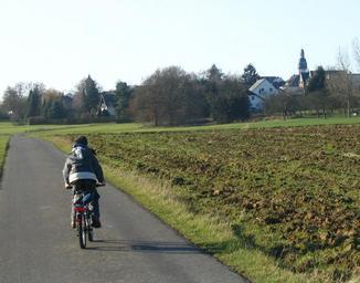 Keywords: Drais-Kirchberg01.jpg Freiherr von Drais Radweg bei Kirchberg im Hunsrück Own 2006-12-24 Markus Braun Kirchberg Hunsrück Bikeways in Germany People using bikeways