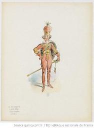 | Keywords: Draner - Costume du Roi Carotte - 1872.jpeg Artwork Un personnage vêtu de orange et jaune en pied content de lui se tient face à l ™observateur Le poing droit à la hanche son autre main repose sur un sabre qui lui bat les talons Cette arme est rendue ridicule car au pommeau pend un gland sous forme de carotte Ce même légume pend à chacune de ses cuissardes et en boucles d ™oreille La couronne témoigne du titre et elle ceint une incroyable mitre faite d ™une très haute carotte 1872 Technique aquarelle color Size cm 24 31 Institution Bibliothèque nationale de France 4-OICOTHE-78 71 object history exhibition history credit line ark /12148/btv1b550034867 in black in draw ~ in black in black supperposé fr Selon la Bibliothèque nationale de France BnF cette oeuvre est pour l ™Ã©dition sans nom sans lieu Il n ™existe pas sur le document mis en ligne par la BnF de date de création d ™impression ou d ™Ã©dition Le titre attribué par la BnF est Le Roi Carotte opéra-bouffe de Victorien Sardou Vicini Roi Carotte dessin / de Draner See below / Voir ci-dessous accession number PD-Art Uploaded with UploadWizard Victorien Sardou Operas by Offenbach Draner Carrots in art |